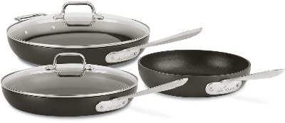 3. All-Clad HA1 Hard Anodized Nonstick Fry Pan Set (3-Piece: 8″, 10″, 12″ with Lid)