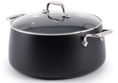 This is an eight-quart pot designed for serious cooking. It has a tough nonstick surface. It comes with a lid. It handles soup, pasta, boiling potatoes, or any bulk cooking project. This pot is built for the kitchen that handles big tasks.
