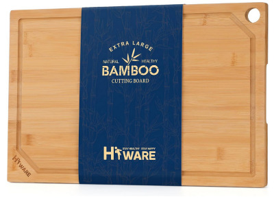 Hiware’s extra-large board is a single-board option for people who want one really great board instead of a set. At 18 inches by 12 inches, it’s genuinely spacious. The board is 100% organic bamboo that’s pre-oiled and includes a juice groove.
